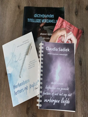 Hier zie je foto's van mijn belangrijkste projecten, waaronder mijn gedichtenbundel "Het Gevecht", "100 dagen Houvast" en "Herkenbare letters op papier".